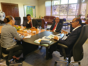 PARAMARIBO-Zijne Excellentie Julang Pujianto, Indonesische ambassadeur voor Suriname, Guyana en de CARICOM-lidlanden, vergezeld van Consul Hanggorono Nurcahyo, brachten een bezoek aan minister Rabin Parmessar van het ministerie van Landbouw, Veeteelt en Visserij (LVV). De minister werd bijgestaan door de onderdirecteur Veeteelt, Virginia Popken. Tijdens dit bezoek, op 21 november 2019, is hij onder andere ingegaan op de stand van zaken met betrekking tot ‘kunstmatige inseminatie van vee’, dat in samenwerking met Indonesië zal worden uitgevoerd en wordt gefinancierd door de Islamic Development Bank (IsDB). De meeste veeteeltbedrijven van Suriname opereren op kleinschalig niveau en hierin wil het ministerie verbetering brengen.