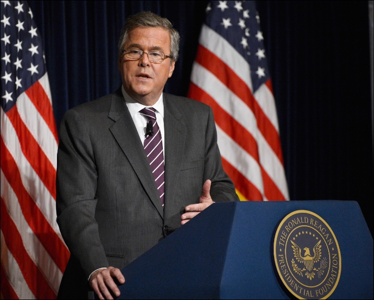 VS – Jeb Bush, die in 2016 een gooi wil doen naar het presidentschap van de Verenigde Staten, heeft zich gedistantieerd van het politieke beleid van zijn vader en broer. ‘Ik heb bewondering voor wat ze voor het land hebben gedaan en voor de moeilijke beslissingen die ze hebben moeten nemen, maar ik ben een onafhankelijke man’, zo zei hij in Chicago. Vader George Bush (90) was gedurende 1989 tot 1993 de 41ste president van de Verenigde Staten, en broer George W. Bush (68) bezette tussen 2001 en 2009 het Witte Huis.(AD/Foto: www.msnbc.com)…[+]