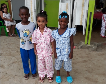 Vanaf 6.00 uur namiddag was het schoolterrein opgefleurd met kinderen in verschillende pyjama’s. Van Mickey Mouse tot Spiderman, haast alle cartoonfiguren waren te zien op de fleurige slaappyjama’s van de leerlingen en de leerkrachten. Op de vraag vanwaar het idee komt om kinderdag op zo een manier te vieren, zegt de eigenaar/ directeur Kimberly Weibolt dat ze gewend is out of the box te denken. Vandaar dat drie jaar terug bij het oprichten van haar school ze ook op het idee kwam om kinderdag net iets anders aan te pakken. In plaats van ouders in de kosten te sturen voor de aanschaf van nieuwe kleren, mogen de kinderen gewoon in hun slaaptenue komen en fun maken. “Een ieder heeft wel tenminste één pyjama in huis liggen, en dat scheelt dus heel wat aan uitgaven”, zegt Weibolt.