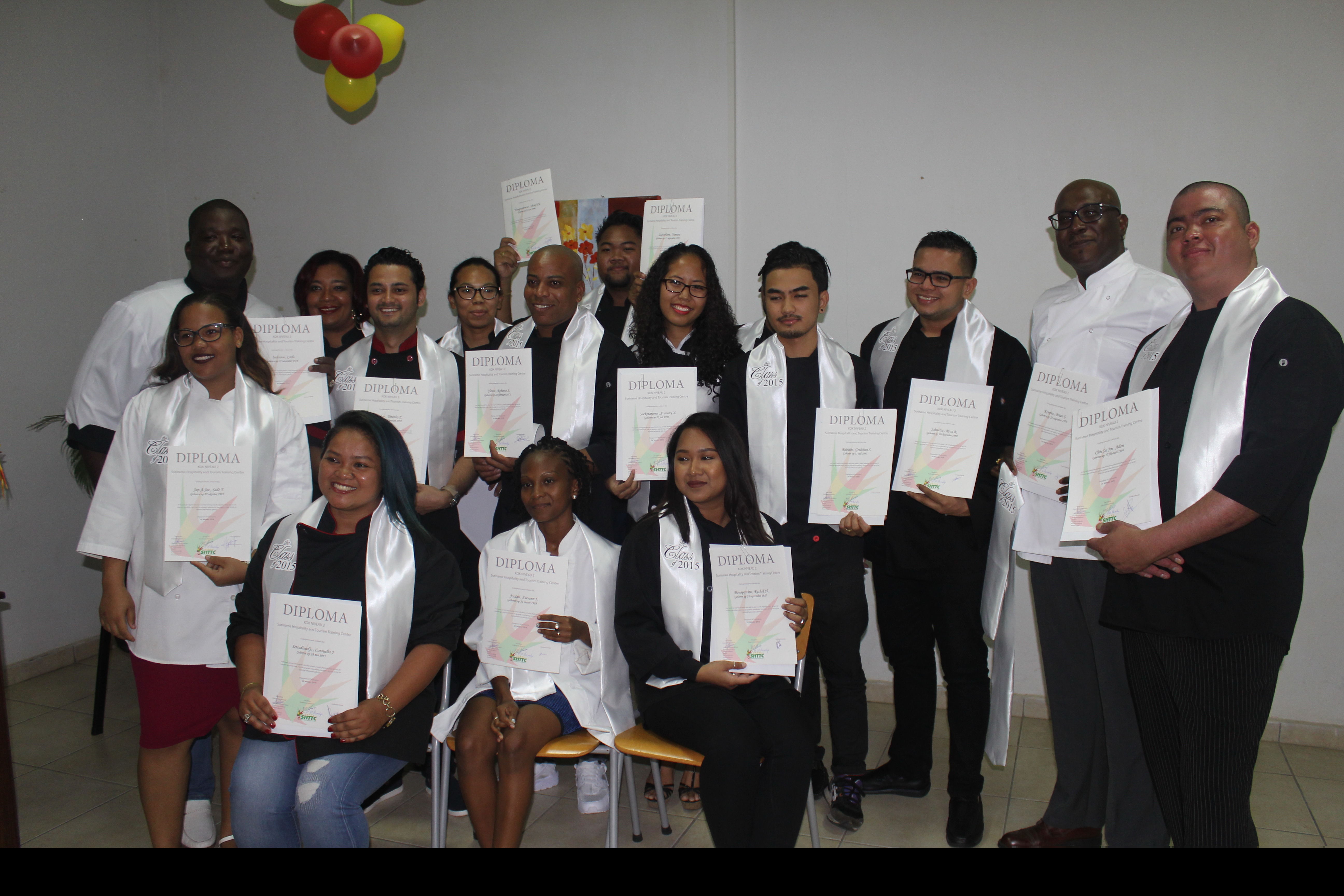 PARAMARIBO-Het trainingscentrum Suriname Hospitality and Tourism Training Centre (SHTTC), heeft afgelopen week 17 koks van het tweede niveau afgeleverd. De opleiding, waaraan aanvankelijk 27 personen mee begonnen, heeft 15 maanden geduurd. In deze periode was inbegrepen een stage van 3 maanden bij gerenommeerde restaurants op Trinidad and Tobago, CuraƧao en in ons land. Niveau-2 heeft betrekking op de norm die in de regio wordt gesteld voor competentiegerichte beroepsopleidingen, namelijk the Caribbean Vocational Qualification ( CVQ).