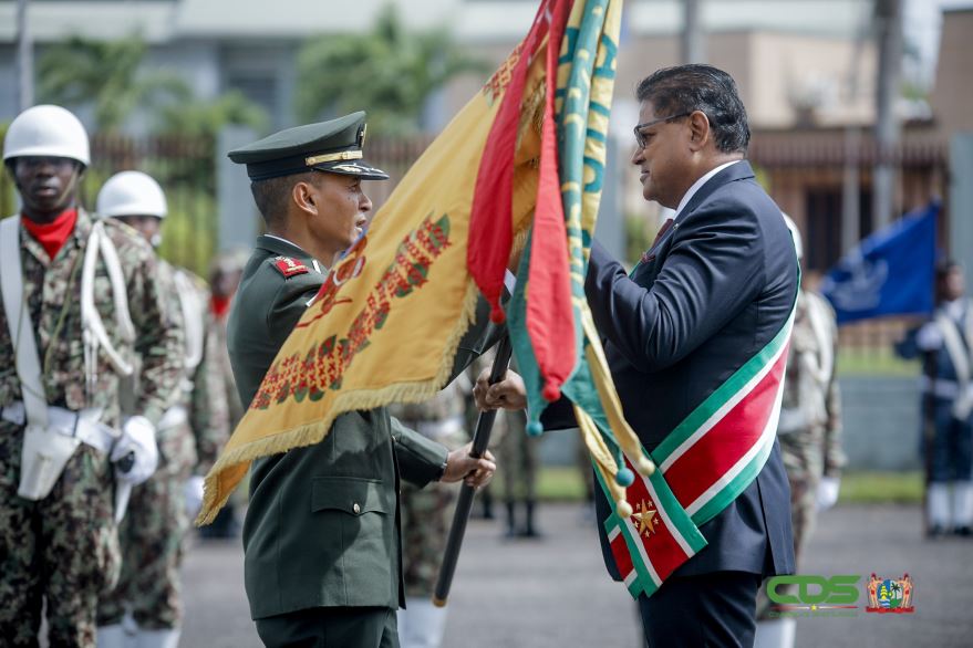 PARAMARIBO – Na zes maanden in de functie waargenomen te hebben, mag kolonel Werner Kioe A Sen zich officieel bevelhebber van het Nationaal Leger noemen. De functionaris is op donderdag 27 oktober 2022 geïnstalleerd als nieuwe legeraanvoerder. Dit moment vond plaats op de appélplaats van de Memre Buku Kazerne in aanwezigheid van president Chandrikapersad Santokhi, defensieminister Krishnakoemarie Mathoera, parlementsvoorzitter Marinus Bee, overige legerfunctionarissen, leden van het Corps Diplomatique en andere hoogwaardigheidsbekleders. President Santokhi sprak over een functie, die niet voor eenieder is weggelegd. Bevelvoering over het Nationaal Leger brengt volgens het staatshoofd bijzondere verantwoordelijkheden met zich mee. “Volgens de bestaande wetgeving moet de bevelhebber erop toezien, dat de soevereiniteit en de territoriale integriteit van Suriname evenals de ondersteuning aan het bevoegd gezag te allen tijde gewaarborgd zijn”, merkte het staatshoofd op. Kolonel Kioe A Sen, die sedert 1 april 2022 belast was met de waarneming in de bevelvoering over het Nationaal Leger, wacht zware verantwoordelijkheden, die gepaard gaan met kennis, gedrevenheid, slagvaardigheid, toewijding en hard werken. De president benadrukte dat het een functie is, waarbij de samenleving moet kunnen rekenen op bijstand van deze functionaris. De bevelhebber is ten dienste van de samenleving, die hij moet beschermen. Bevelhebber Kioe A Sen werd door het staatshoofd geattendeerd op de uitdagende tijden, waarbij het van belang is om het personeel gemotiveerd te houden. Ook vroeg hij de ondersteuning van de nieuwe legeraanvoerder bij de transformatie welke het Nationaal Leger momenteel ondergaat…[+]