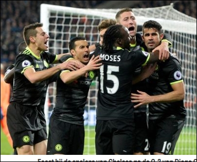 Chelsea heeft naaste achtervolger Tottenham Hotspur, dat afgelopen weekeinde van Everton (3-2) won, maandagavond weer op tien punten gezet. The Blues wonnen op bezoek bij West Ham United met 2-1. De doelpunten van Chelsea werden in het Olympisch Stadion in Londen verzorgd door Eden Hazard en Diego Costa. Manuel Lanzini bracht de spanning in de slotfase nog even terug, maar de aansluitingstreffer kwam te laat voor de ploeg van Slaven Bilic.(Telegraaf)…[+]