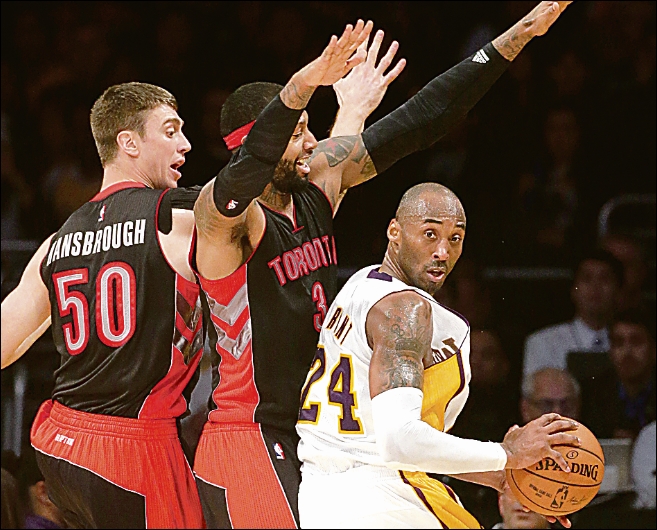 BASKETBAL – Een knappe overwinning van Los Angeles Lakers zondag in eigen huis versloeg de getroebleerde ploeg namelijk Toronto Raptors met 129-122. Het was de eerste keer in vier wedstrijden dat Lakers weer eens wist te winnen, en niet tegen de minste ploeg. Raptors staat nog altijd fier bovenaan in de Eastern Conference. In de laatste wedstrijd van november trok Kobe Bryant zoals wel vaker de kar. De 37-jarige ster van Lakers noteerde een triple double (31 punten, 11 rebounds, 12 assists) en weet zich met dit sterke staaltje basketball verzekerd van een plekje in de recordboeken. Hij is namelijk de oudste speler in de NBA ooit met een triple double met meer dan dertig punten. State of the Night material, indeed!…[+]