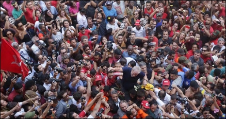 Brazil’s former president Luiz Inácio Lula da Silva has handed himself in to police after spending two nights at the metalworkers’ union headquarters in São Paulo in defiance of an arrest warrant. “I’m going to prove my innocence,” Lula told a large crowd of adoring supporters on Saturday at the building where he began his political career. “Do what you want, the powerful can kill one, two or 100 roses. But they’ll never manage to stop the arrival of spring.”
