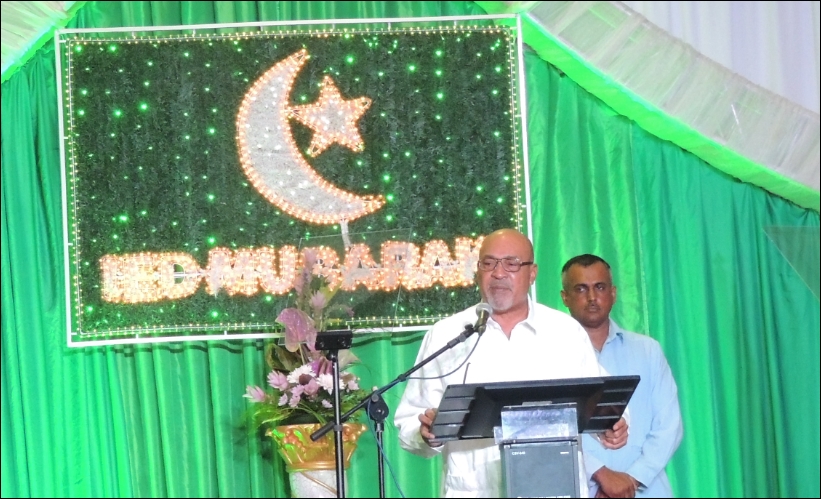 PARAMARIBO – Ruim 6000 moslims van verschillende moskeeën uit het land zijn zaterdagavond bij elkaar gekomen voor de Nationale Ied- viering. De viering vond plaats in de hal van de Kamer van Koophandel en Fabrieken. Volgens de voorzitter van het Nationaal Moslim Platform, Richard Ali, zijn er vanuit verschillende districten moslims gekomen om elkaar te feliciteren en een warm hart toe te dragen na de vastenperiode.
