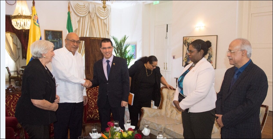 PARAMARIBO – De minister van Buitenlandse Zaken van Venezuela, Jorge Arreaza, heeft een bezoek gebracht aan president Desi Bouterse. Dit in het bijzijn van zijn Surinaamse ambtgenoot, Yldiz Pollack-Beighle. Tijdens dit onderhoud is er gesproken over de banden tussen Suriname en Venezuela.