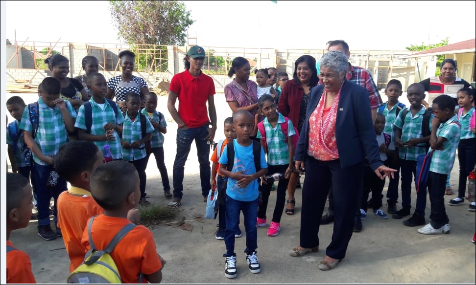 PARAMARIBO- Het nieuwe schooljaar is van start gegaan. Leerlingen van het Gewoon Lager Onderwijs en het Voortgezet Onderwijs voor Junioren zijn maandag 1 oktober vol goede moed begonnen aan het schooljaar 2018/2019. Minister Lilian Ferrier van Onderwijs, Wetenschap en Cultuur (OW&C) heeft op O.S. Geyersvlijt 1 de leerlingen een hart onder de riem gestoken en de leerkrachten van deze school veel succes toegewenst met dit nieuw schooljaar. De minister vroeg de leerlingen om gedurende het gehele schooljaar elkaar te helpen. “Wanneer we een beetje anders met elkaar omgaan, ga je zien hoe leuk het gaat worden op school”, sprak de bewindsvrouw tot de leerlingen. Na de bemoedigende woorden heeft minister Ferrier samen met de leerlingen het volkslied gezongen tijdens de vlaggenparade. Dit staat in een persbericht van het Nationaal Informatie Instituut. De leerlingen van O.S. Geyersvlijt 1 zullen voor deze week les volgen in een speciaal ingerichte ruimte bij de Memre Boekoe-Kazerne. Kort na de aanvang van de vakantie gingen enkele lokalen in vlammen op. Door tussenkomst van vicepresident Michael Ashwin Adhin zijn middelen ter beschikking gesteld om de verwoeste lokalen weer op te zetten. De werkzaamheden aan de nieuw op te zetten lokalen worden deze week afgerond…[+]