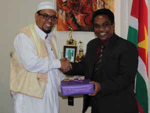 PARAMARIBO – Minister Mohamed Noersalim van Binnenlandse Zaken heeft dinsdag sportattributen, damborden en ballen, overhandigd aan de directeur van de World Islamic Call Society (WICS), Adel Ali Khalifa Sahem. Dit staat in een persbericht van het Ministerie van Binnenlandse Zaken. Bij het kennismakingsbezoek dat de WICS-directeur vorige week aan de minister bracht, was de belofte gedaan dat er een tegenbezoek aan de religieuze organisatie zou volgen. De sportattributen zijn bedoeld om de organisatie te ondersteunen met haar educatieve activiteiten voor de jeugd, die vooral in de vakantie in verschillende districten worden ontplooid…[+]
