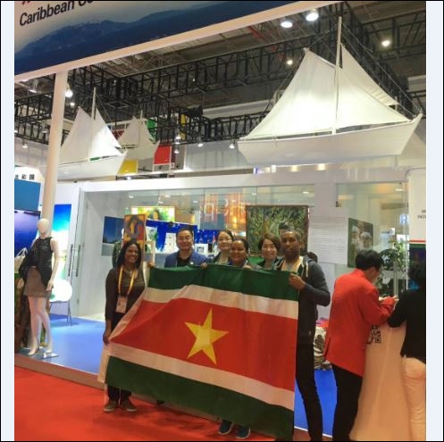 Ook Suriname is aanwezig met diverse stands. De nationale stand is in het Caribbean paviljoen met andere Caricom landen. Hier is nadruk gelegd op de diversiteit in cultuur en natuur van Suriname middels de Creatieve Industriesector, diverse producten uit het regenwoud en agribusiness. Onder meer zijn kunstwerken van Paul Woei gehighlight, die het uitbeelden van de inheemse vrouw heeft als één van zijn specialismen. Tevens zijn er diverse houtsnijwerken van Rab Creations en Rahied Abdoel geëxposeerd.