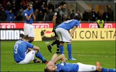 De Italiaanse kranten doen dinsdag weinig moeite om hun teleurstelling over het mislopen van het WK van volgend jaar in Rusland te verbergen. De verslagenheid is groot bij de Zuid-Europeanen. Italië kwam maandag niet verder dan een 0-0 gelijkspel tegen Zweden en gaat daardoor voor het eerst sinds 1958 niet naar het WK.