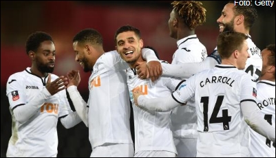 Swansea City heeft dinsdag in de vierde ronde van de FA Cup niets heel gelaten van Notts County (8-1). Bayern München en de scorende Arjen Robben hadden in de kwartfinales van de DFB Pokal geen enkele moeite met derdedivisionist SC Paderborn (0-6). Met Mike van der Hoorn en Luciano Narsingh als basisspelers maakte Swansea gehakt van Notts County. De teller van de Welshmen stokte bij 8-1 tegen de oudste profclub ter wereld, die uitkomt op het vierde Engelse niveau.