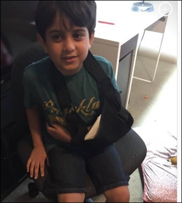 “Welcome to the United States of America of Donald Trump,” Zeeshan-ul-hassan Usmani captioned a Facebook photo showing his son, Abdul, with his left arm in a sling. “He is in grade 1, bullied and beaten by his own classmates in school bus for eing a Muslim.” Usmani told the Daily News at least two Weatherstone Elementary School students called his son racial slurs and challenged him to a fight once they got on the bus after school last Friday. (nydailynews.com)…[+]