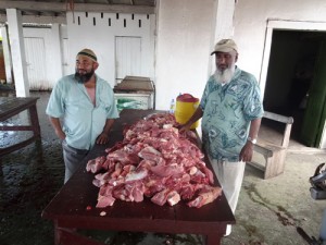 The next two days will be filled with socializing, good foods and presents for Muslims countrywide. The three-day Muslim holiday of Eid-ul-Adha began yesterday. Muslims around the world will celebrate the story of Abraham or Ibrahim and his willingness to fully submit to God. The holiday is both religious and a fun-filled time. Muslims throughout the world honour Abraham by sacrificing their own animals- usually a bull, lamb or a sheep. Most people choose to have it done through a butcher rather than undertaking the task themselves. They may also carry the animal for the sacrifice to be done at a Masjid. In a story that appears in both the Quran and the Bible, Abraham is commanded by God to kill his son. Muslims believe the intended victim was Ishmael; Jews and Christians believe it was Isaac. Either way, Abraham is about to do the ghastly deed when God offers him a ram to sacrifice instead. Traditionally, the sacrifice evolves into an act of charity. It is customary for Muslims to give one-third of the meat to the poor and one-third to friends and family, and to keep one-third. Mohamed Mujay, a member of the McDoom Jamaat, said that they slaughtered about 16 animals (cows) and distributed the meat to the villagers. He explained that whatever meat is left, it will be distributed to the members of the Masjid. (KAIETEUR NEWS/PHOTO: KAIETEUR NEWS)…[+]