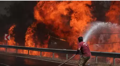 Een oprukkende natuurbrand aan de rand van de Griekse hoofdstad Athene dwingt duizenden bewoners te vluchten. Brandweerlieden bleken niet in staat de gigantische brand, die inmiddels de noordelijke voorsteden heeft bereikt, te bedwingen. Dikke rookwolken zijn vanuit heel Athene zichtbaar. In Turkije, waar de natuurbranden inmiddels zes dagen aan de gang zijn, wordt een elektriciteitscentrale bedreigd. Het vuur bij Athene bedreigt vooral Acharnes, een van de grootste voorsteden. De burgemeester riep via televisie zijn burgers op onmiddellijk hun huizen te verlaten. Inwoners kregen ook een waarschuwing per sms van de burgerbescherming. Veel bewoners verlieten in paniek hun huizen. Er zijn meldingen dat personen door het vuur zijn ingesloten. Op meerdere plekken in de regio viel de stroom uit.(NU)…[+]