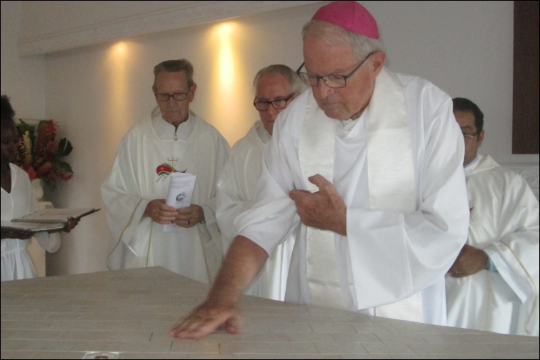PARAMARIBO – De rooms-katholieke gemeenschap in Domburg beschikt sinds kort over een nieuw gebouw. Het gebouw werd zaterdag officieel in gebruik genomen nadat het door monseigneur Wim de Bekker was ingewijd. Het gebouw was in een zodanige staat, dat slopen onvermijdelijk was. Voor de parochie ‘Allerheiligste Verlosser’ is een compleet nieuw gebouw opgezet. Leden, familie, vrienden en parochianen hebben geld bij elkaar gezet om de kerk aan de Sir Winston Churchillweg nummer 831B te herbouwen . Na de inwijding is de kerk overgedragen aan de pastoor. Andrew Fung-A-Loi, waarnemend voorzitter van het kerkbestuur, zegt dat het gebouw sinds november vorig jaar bouwkundig klaar was, maar de inrichting moest nog plaatsvinden. Fung-A-Loi is blij dat de kerk door de gemeenschap is gebouwd…[+]