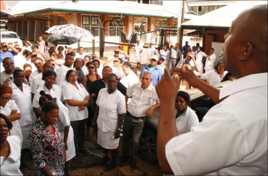 PARAMARIBO – De ‘nieuwe’ vakbond van het ’s Lands Hospitaal onder leiding van Imro Edam heeft gisteren samen met het personeel een prikactie gevoerd, omdat volgens hem de ‘oude’ vakbond onder leiding van Iwan Weeks die wel erkend wordt door de directie, de belangen van de personeelsleden niet optimaal behartigt. Volgens Edam was de vakorganisatie genoodzaakt om een prikactie te voeren, om zo meer druk uit te oefenen op de directie en de ‘oude’ vakbond…[+]