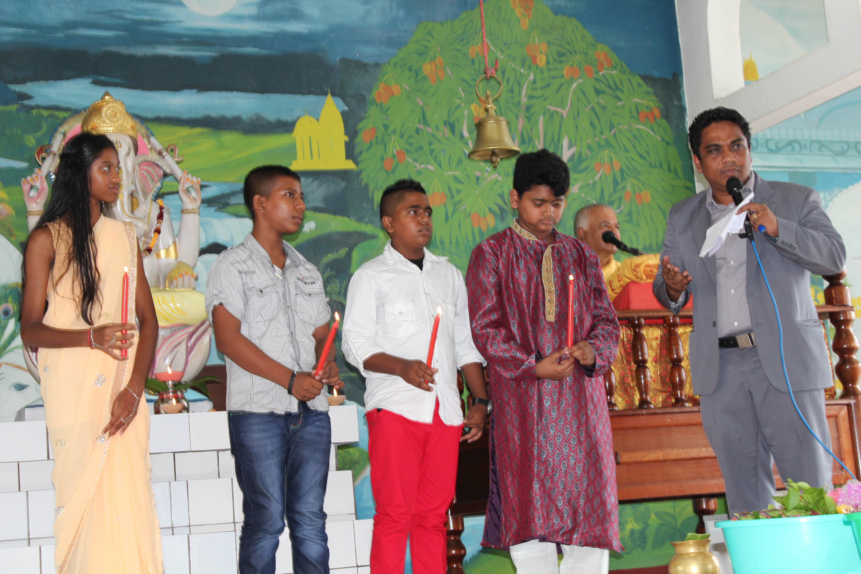 PARAMARIBO – Minister Noersalim van Binnenlandse Zaken (BIZA) heeft op uitnodiging van het bestuur van de Shri Radha Krishna Ved Mandir een divali-toespraak gehouden in de mandir aan de Indira Gandhiweg. De bewindsman heeft zijn boodschap op zeer uitzonderlijke manier overgebracht, waarbij aanwezigen, onder wie de enthousiaste leerlingen van de Shri Hanuman muloschool, genoten hebben van de interactie tussen hen en de minister.
