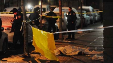 At about 7 p.m., a gunman shot two men, killing one, after an argument on the corner of E. 175th St. and Weeks Ave. in Mt. Hope. — the same intersection where a man and woman were killed in a double murder in July. One man, 41, was shot once in the head and died on the scene.