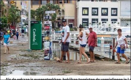 SAN JOSE DEL CABO – Twee doden en drie vermisten, dat was het trieste resultaat nadat orkaan Newton dinsdag over het noordwesten van Mexico was geraasd. De orkaan blies over het Mexicaanse schiereiland Baja California en bracht niet alleen een enorme storm van 120 kilometer per uur, maar ook zware regenval met zich mee. Cabo San Lucas is een toeristisch gebied dat vooral bij Amerikanen populair is. Maar omdat het nu toeristische laagseizoen is, waren de hotels niet heel vol.(Telegraaf)…[+]