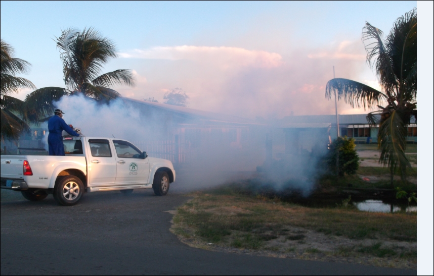SURINAME – Residents from Blauwgrond, Maretraitte and Tourtonne are not content with the way the Public Health Bureau (BOG) is spraying malathion. Families who live in these neighborhoods followed the instructions from the BOG by opening their windows and doors while waiting for the chikungunya vehicle. “When the vehicle finally passed by their houses, it seemed like a waste of time,” said a resident from Maretraitte. “The tiny spout of malathion from the spray vehicle did not even reach the balcony located in my backyard.” The Singhs from Blauwgrond also share the same opinion…[+]