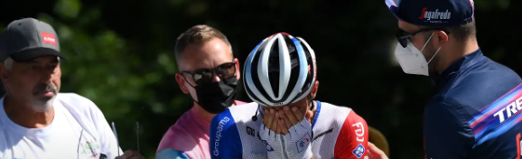 Het zat Thibaut Pinot zaterdag behoorlijk tegen in de achtste etappe van de Tour de France. De Fransman kwam ten val en kreeg vervolgens per ongeluk een klap op zijn kaak van een verzorger van Trek-Segafredo. “Er ging vandaag niet veel goed, maar ik moet ermee omgaan en ik hoop dat er betere dagen zullen komen”, zei Pinot na afloop van de etappe. “Het kon hoe dan ook niet slechter.” De 32-jarige renner van Groupama-FDJ kreeg de klap van de verzorger op de Col de Pétra Félix, de voorlaatste beklimming van de dag. De soigneur wilde een etenstasje aan een van de renners van Trek-Segafredo geven, maar raakte daarbij onbedoeld het gezicht van Pinot.(NU)…[+]
