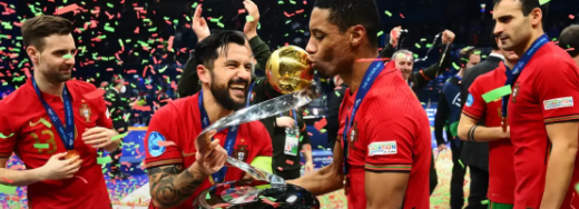 De Portugese zaalvoetballers hebben zondag in de Ziggo Dome in Amsterdam de Europese titel geprolongeerd. Portugal won in de finale met 4-2 van Rusland. De ploeg maakte in een spectaculair duel een achterstand van 2-0 goed. Anton Sokolov zette de Russische ploeg na tien minuten op voorsprong. Hij draaide weg bij Pany Varela en schoot de bal langs keeper André Sousa. Vrij snel daarna zette Artem Antosjkin een aanval op over links, gaf een tikje opzij naar Andrej Afanasjev, die de bal in het net knalde. Vlak voor rust vond Portugal de aansluiting via een goal van Tomás Paço. Na rust had Rusland aanvankelijk het beste van het spel, maar Portugal bewees opnieuw dat het na een achterstand kan terugvechten. (BBC)…[+]