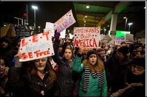 NEW YORK – Op de New Yorkse luchthaven John F. Kennedy (JFK) hebben zaterdagavond meer dan duizend mensen geprotesteerd tegen het inreisverbod dat president Trump heeft afgevaardigd. Zij eisen de vrijlating van elf vluchtelingen die daar sinds de aanscherping van het immigratiebeleid worden vastgehouden. Trump heeft beslist dat mensen uit zeven islamitische landen geen visum meer krijgen. Twee door de autoriteiten tegengehouden Iraakse immigranten vechten de beslissing dat ze de VS niet in mogen aan bij de rechter. Zij beweren dat het voor hen niet veilig is om terug te keren naar Irak omdat ze banden hebben met de VS. Een van de mannen werd zaterdag vrijgelaten. De ander is een van de elf die nog worden vastgehouden.(Telegraaf)…[+]