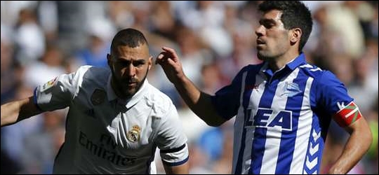 Real Madrid blijft koploper in La Liga dankzij een ruime overwinning op Deportivo Alavés. De gasten mochten echter lang hopen op een puntje.De vijfmansverdediging van Alavés hield goed stand en Real Madrid moest zich in de openingsfase beperken tot een paar schoten van afstand. Toch werd het na een halfuur spelen 1-0 voor de Madrilenen. Dani Carvajal legde terug op Karim Benzema, die de bal met links in de hoek schoot.