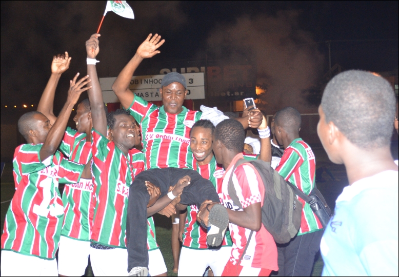 VOETBAL – “Wij wisten wat wij moesten doen, en dat is zo snel mogelijk terugkeren naar de hoofdklasse”, zegt de blije trainer Dwight Renfrum van Robinhood na de gewonnen promotie/degradatiewedstrijd tegen Boma Star. Robinhood keert na een jaar terug naar de hoofdklasse van de Surinaamse Voetbal Bond, nadat het team vrijdagavond de tweede wedstrijd in een vol Essedstadion met 3-0 won. Boma Star, dat de eerste wedstrijd nog won met 4-3, keert na een jaar weer terug naar de eerste klasse…[+]