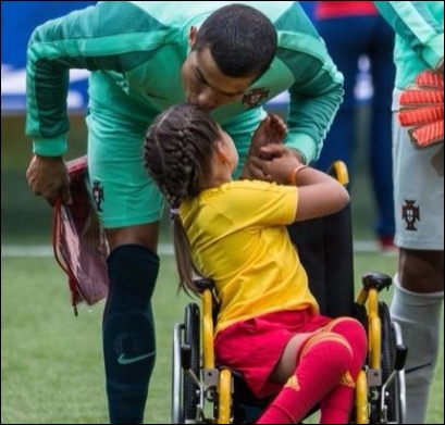 Ronaldo bezorgt jonge fan in rolstoel dag van haar leven