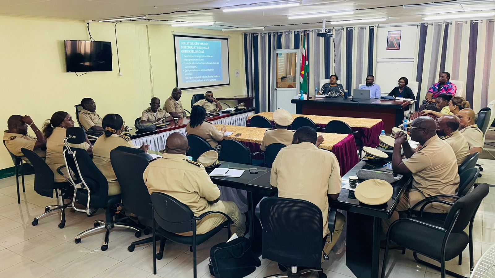 PARAMARIBO – Directeur Maverick Boejoekoe van het ministerie van Regionale Ontwikkeling en Sport (ROS) heeft samen met de diverse districtscommissarissen van Suriname een reguliere meeting gehouden, rond de gang van zaken op de verschillende commissariaten. Deze bijeenkomst vond plaats op 26 september 2022.