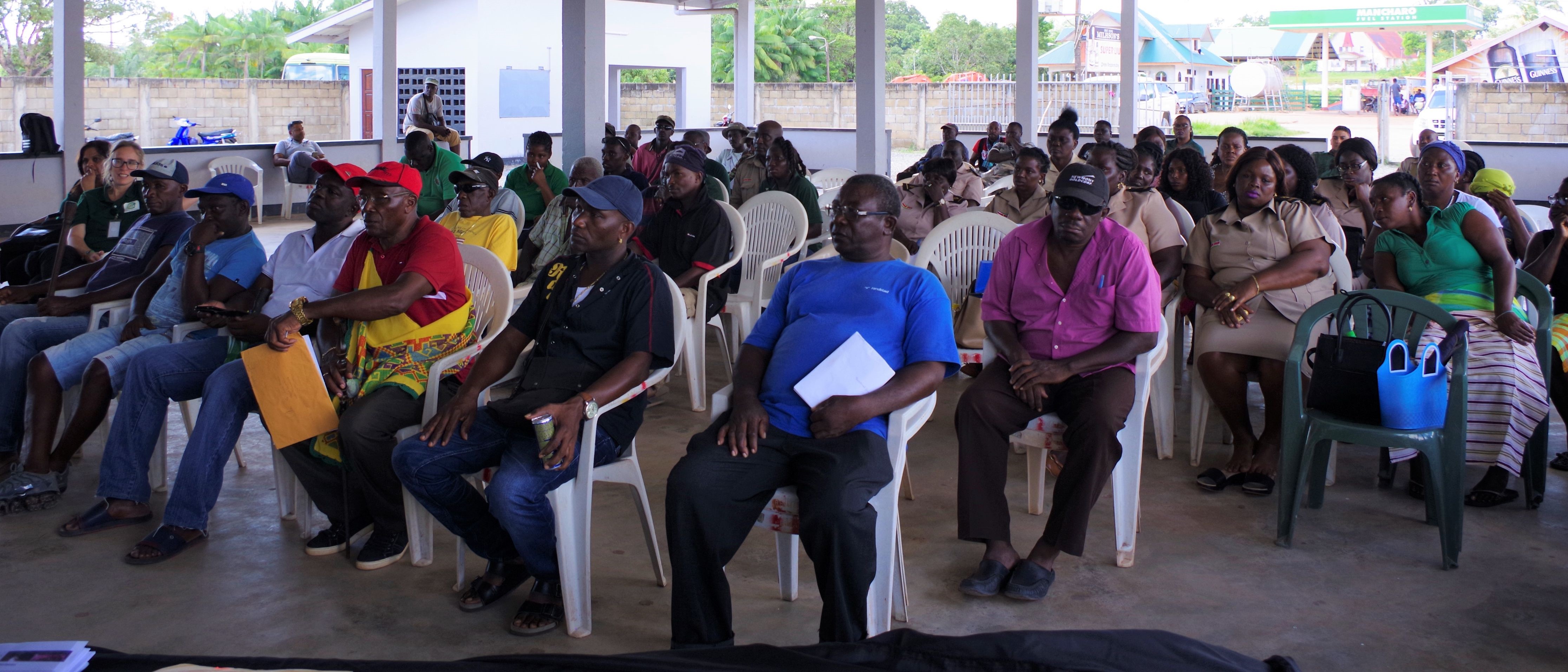Meer dan 40 personen van de lokale gemeenschap hebben deelgenomen aan de informatiesessie; waaronder het traditioneel gezag van de betreffende dorpen en hoofdkapitein Finisie. De aanwezigen kregen de gelegenheid vragen te stellen, welke werden opgevangen door de vertegenwoordigers van SBB en DOAS. Aansluitend op de informatiesessie heeft het team van de SBB ook een introductie training in het gebruik van GPS bij de planning van houtkap verzorgd aan de aanwezigen. In een vervolgtraject zullen twee afgevaardigden van elk dorp de gelegenheid krijgen een uitgebreide training te volgen in september 2019. De SBB blikt tevreden terug op het resultaat van de informatiesessie. In totaal zal de informatiesessie worden verzorgd aan 20 dorpen…[+]