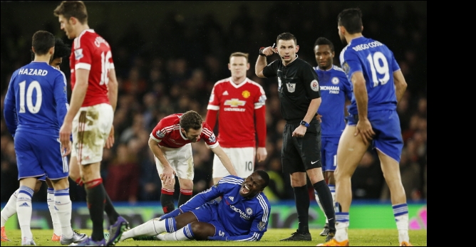 De schrik zat er even goed in bij de spelers van Chelsea. Hun ploeggenoot Kurt Zouma kwam na enigszins onbesuisd invliegen heel ongelukkig terecht op zijn rechtervoet. Een enorme schreeuw volgde en hij werd vervolgens per brancard van het veld afgevoerd.Chelsea-trainer Guus Hiddink stuurde in de 59e minuut Gary Cahill als vervanger van Zouma het veld in. De ernst van de kwetsuur is nog niet bekend.Het duel tussen Chelsea en Manchester United eindigde in 1-1.(Telesport.nl)…[+]