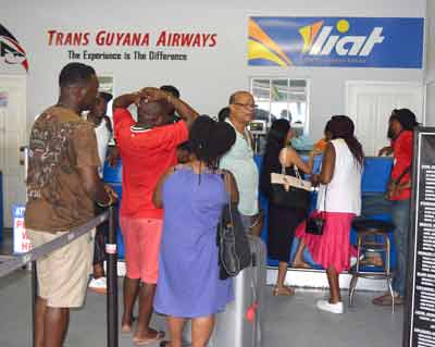 Several LIAT Airlines passengers, who would have flown into Guyana, are frustrated at not receiving their luggage on time.These passengers have been visiting the Eugene F. Correia International Airport for the past couple of days inquiring about their suitcases but to no avail. When Kaieteur News visited the Airport on Saturday, some of the passengers were voicing their concerns. Many stated that they came to Guyana to celebrate the country’s Golden Jubilee.