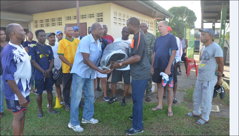 VOETBAL – De ex-profvoetbalkeeper en voetbaltrainer, Stanley Menzo, heeft in het weekend namens de Koninklijke Nederlandse Voetbal Bond (KNVB) en de Suriprofs, twee paar vangnetten overhandigd aan voorzitter Jules Esajas van de sociaal culturele sportvereniging Tourtonne All Stars (TAS). Door bemiddeling van Kenneth Jaliens, lid van TAS, hebben de KNVB en Suriprofs deze netten geschonken ten behoeve van het nieuwe sportcomplex van TAS…[+]