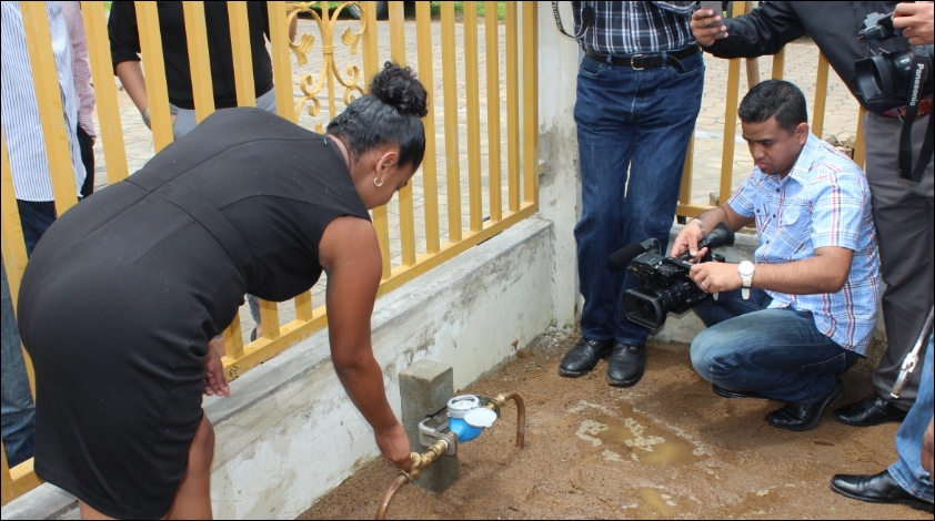 PARAMARIBO- Het Ministerie van Natuurlijke Hulpbronnen (NH) heeft vorige week samen met de Surinaamsche Waterleiding Maatschappij (SWM) het startsein gegeven voor het bemeteren van huishoudens in het district Commewijne. Minister Regilio Dodson die ook in dit district woonachtig is, werd als eerst voorzien van een watermeter.