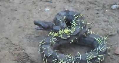 Stekelvarken neemt wraak in slang