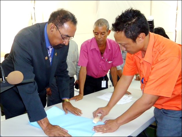 PARAMARIBO – Het vouwen en stempelen van de stembiljetten in het kader van de verkiezingen op 25 mei, is gisteren op het Ministerie van Binnenlandse Zaken (BIZA) onder toeziend oog van minister Edmund Leilis van start gegaan. “Zonder stembiljetten kunnen we niet naar de stembus. Het is dus heel belangrijk dat deze biljetten op de juiste wijze worden voorbereid. De organisatie van een goede verkiezing is een verantwoordelijkheid van ons allen, dus laten we ons werk goed doen”, zei Leilis bij de aanvang van de werkzaamheden…[+]