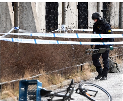 A 45-year-old woman suffered facial injuries, police said. The blast occurred on Sunday morning at Varby Gard station in Huddinge, south of the Swedish capital. Police cordoned off the station and the square where the explosion happened as the bomb squad moved in to investigate. The Expressen and Aftonbladet newspapers said the device was a hand grenade. “It is too early to say. Technicians are still working on it. Nothing indicates that the (injured) couple were targeted,” said Olsson, who added there was nothing to suggest an act of terrorism.(theguardian)…[+]
