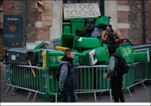 Teenage demonstrators have blockaded more than a dozen high schools in and around Paris, mounting makeshift barricades and setting fire to cars, scooters and rubbish bins in protest at the alleged rape by police of a young black man.