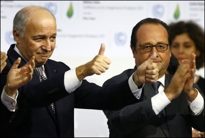 PARIJS – Op verschillende plaatsen in de wereld is met blijdschap gereageerd op het in Parijs bereikte klimaatverdrag. IMF-topvrouw Christine Lagarde noemde het akkoord een “cruciale stap voorwaarts”. Zij vindt dat er een flink prijskaartje moet komen te hangen aan de uitstoot van broeikasgassen. Alleen zo komen bedrijven tot alternatieve energie-initiatieven, aldus Lagarde. De Britse premier David Cameron spreekt van een belangrijke dag. Op zijn Facebookpagina meldt hij “Deze generatie heeft belangrijke stappen gezet om onze kinderen en kleinkinderen te tonen dat wij de toekomst van onze planeet hebben zeker gesteld”. Hij prijst Frankrijk voor zijn gastheerschap na de aanslagen van 13 november. “De volkeren van de wereld hebben laten zien wat je kunt bereiken met eenheid, ambitie en doorzettingsvermogen…[+]