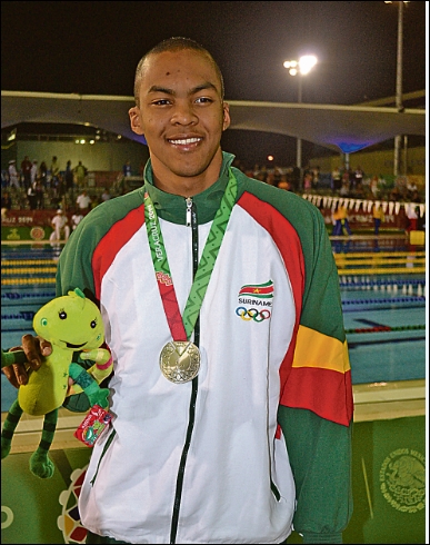 ZWEMMEN – Renzo Tjon A Joe heeft donderdagavond weer eremetaal behaald voor Suriname, tijdens de 22ste Centraal-Amerikaanse en Caribische Spelen (Cacso). De Surinaamse zwemmer haalde in het Leyes de Reforms Aquat Center op de 50 meter vrije slag een zilveren medaille met een tijd van 22.62. George Bovell III (Trinidad & Tobago) pakte goud met een tijd van 22.30 secondes. De Cubaan Hanser Garcia werd derde met een tijd van 22.69 secondes. Tjon A Joe begon de wedstrijd goed en lag de eerste 25 meter gelijk met Bovell III. Het waren de laatste 25 meter die de doorslag brachten. Hierin nam Bovell III een lichte voorsprong op Tjon A Joe en tikte als eerste aan…[+]
