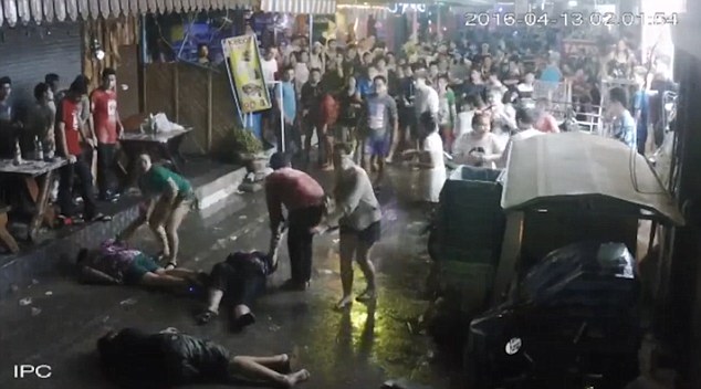 THAILAND – Three British holidaymakers were ruthlessly beaten by a gang of men of Thailand, leaving them hospitalised. CCTV footage captured the extremely violent attack in the popular tourist resort of Hua Hin, where the elderly couple and their middle-aged son were celebrating Thai New Year. The row appears to escalate from nowhere, with one of the two men being punched to the ground. A melee ensues between passersby and the gang members, with the British woman, who is believed to be in her 60s, approaching one of the gang and appearing to try to reason with him. But the man instead punches her in the face and knocks her to the ground, while both are being kicked and punched. As she tries to sit back up, one of the gang kicks her violently in the jaw and knocks her out.(dailymail.co.uk)…[+]