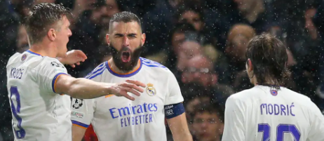 Karim Benzema krijgt maar geen genoeg van de Champions League-avonden met Real Madrid. De spits was woensdagavond met een hattrick in het eerste kwartfinaleduel met Chelsea (1-3-zege) opnieuw goud waard voor de ‘Koninklijke’. “Dit zijn magische avonden, net als laatst in BernabĂ©u tegen Paris Saint-Germain”, zei Benzema in een eerste reactie op Stamford Bridge bij Movistar Plus. “We wilden laten zien hoe goed we zijn. Het wedstrijdverloop was in ons voordeel en we speelden goed, van de eerste tot de laatste minuut.” De 34-jarige Benzema, die in de return tegen PSG in de achtste finales (3-1) eveneens een hattrick noteerde, maakte vooral indruk met zijn eerste twee doelpunten tegen Chelsea in de eerste helft. De Fransman wist twee voorzetten in een lastige positie op technisch zeer fraaie wijze raak te koppen.(NU)…[+]