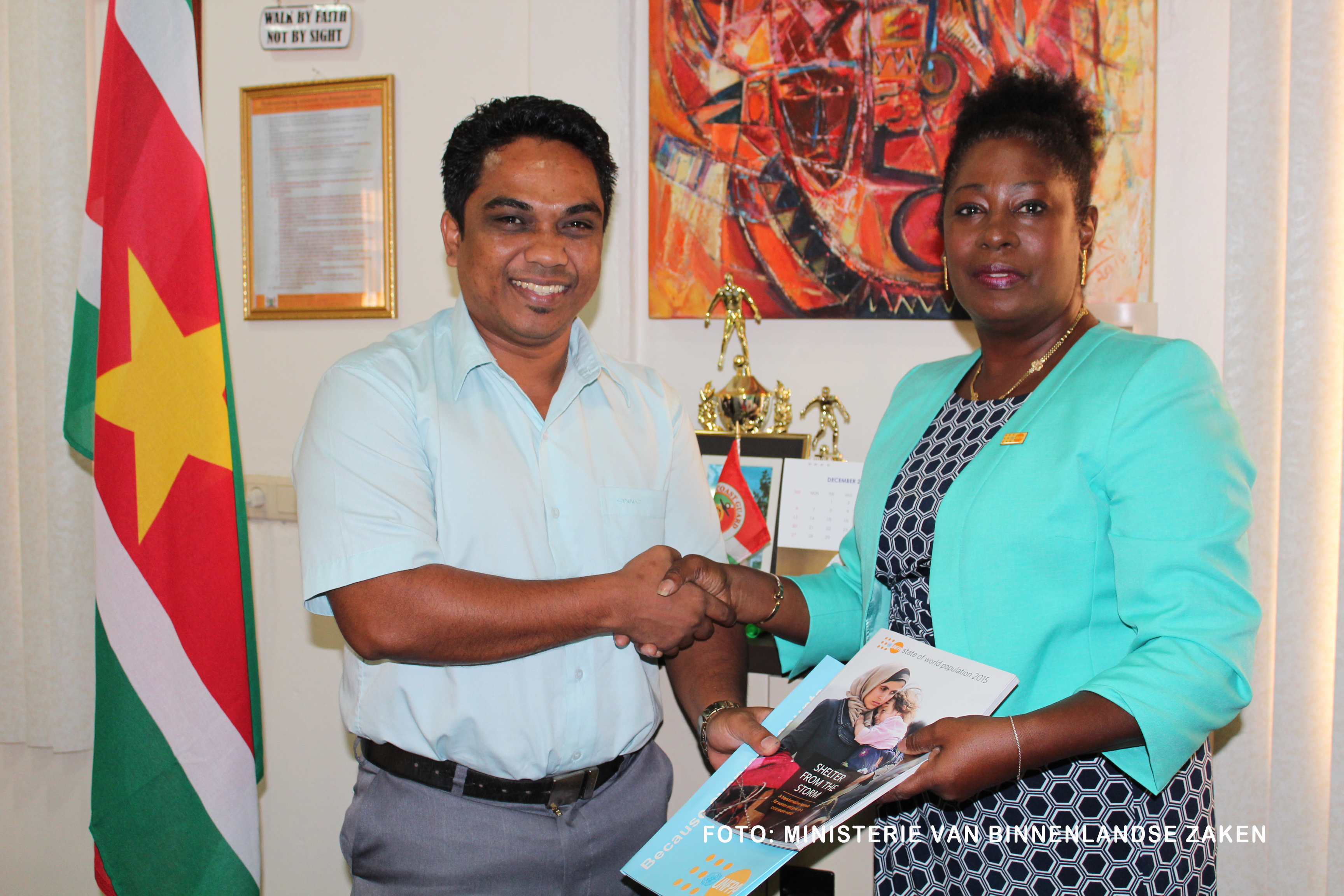 PARAMARIBO – Judith Brielle van het United Nations Fund for Population (UNFPA) heeft maandag tijdens een bezoek aan minister Mike Noersalim van Binnenlandse Zaken (BIZA) bevestigd dat de samenwerking met het ministerie wel degelijk voortgezet wordt. Dit ondanks er steeds minder fondsen beschikbaar zijn.
