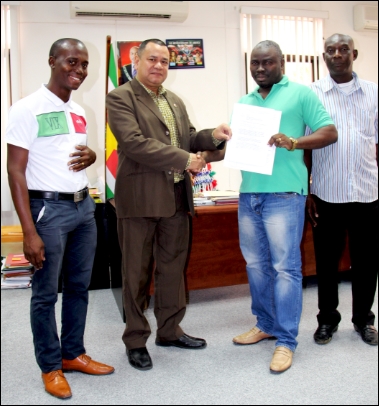 PARAMARIBO- Minister Relyveld overhandigde vanmorgen op zijn kantoor een toewijzingsbeschikking van een perceelland groot 5 ha. gelegen aan de Martin Lutherkingweg ten behoeve van De Vereniging van Binnenlandse Houtproducenten onder voorzitterschap van Paul Abiting.