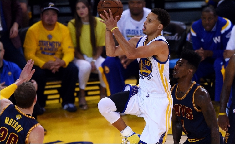 BASKETBAL – Golden State Warriors is de best-of-seven-finale in de NBA begonnen met een zege op Cleveland Cavaliers. De bloedstollende confrontatie werd pas in de verlenging beslist: 108-100. De spanning zat ‘m met name in de slotfase van de reguliere speeltijd. Bij een stand van 98-98 en met nog 31,9 seconden te gaan leek Stephen Curry te gaan scoren voor de Warriors. Kyrie Irving wist dat echter een prachtig blok te voorkomen. Aan de andere kant miste LeBron James, toen er nog slechts 3,6 seconden op de klok stond.(Nos).(Foto:Zimbio)…[+]