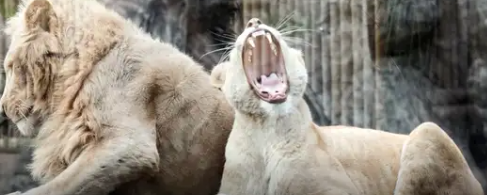 Zeldzame witte leeuw doodt man die welpjes wilde stelen uit dierentuin in Ghana