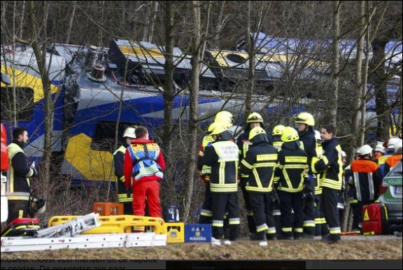 ,,Het was een vreselijke aanblik“, vertelde federaal minister van Verkeer Alexander Dobrindt (CSU). ,,Die treinen waren totaal, zonder snelheid te minderen, op elkaar gebotst. Shockerend. De cabine van een machinist werd compleet verwijderd.(Telegraaf)…[+]