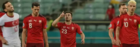Zwitserland is zondag ondanks een 3-1-zege op Turkije nog niet helemaal zeker van een plek in de achtste finales op het EK. De Zwitsers nemen als nummer drie van groep A plaats in de wachtkamer. Turkije verlaat het toernooi met drie nederlagen. De Zwitserse vedette Xherdan Shaqiri was de grote man in Bakoe met twee mooie goals. Haris Seferovic opende de score voor Zwitserland, terwijl Irfan Kahveci de 2-1 namens Turkije voor zijn rekening nam.